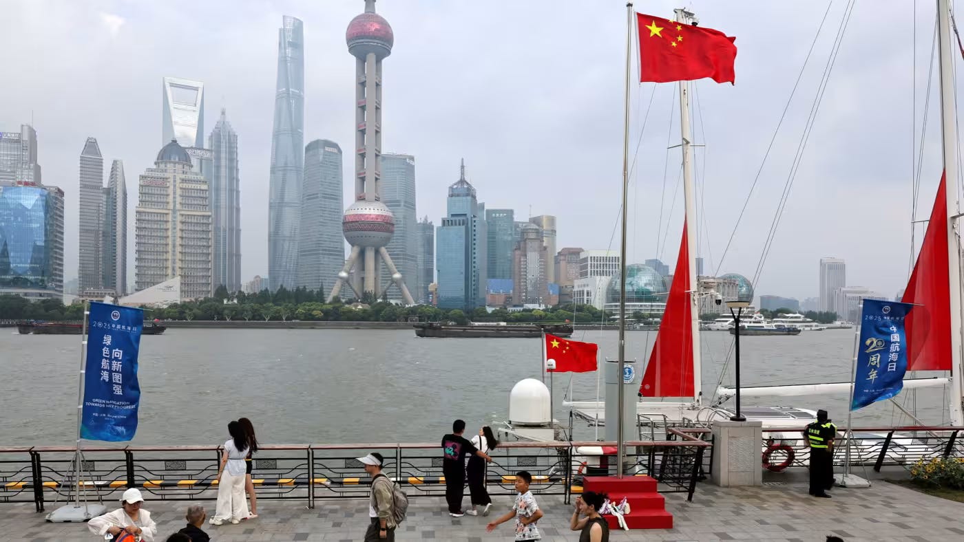 China’s economy grew by 5.2% year-on-year in the second quarter of 2025, slightly surpassing analyst expectations and keeping Beijing on track to meet its full-year growth target of around 5%, despite ongoing challenges from weak domestic demand and a struggling property sector. The stronger-than-expected performance was largely driven by resilient exports, which benefited from a temporary truce in the U.S.-China trade war, allowing Chinese producers to boost overseas shipments. However, uncertainty looms as the Trump administration considers tightening trade restrictions, including imposing tariffs on Chinese goods rerouted through third countries like Vietnam. While policymakers in Beijing are expected to fine-tune economic measures to maintain growth momentum, concerns are rising over industrial overcapacity and intensifying domestic price wars. With President Xi Jinping facing critical trade negotiations in the coming weeks, the balance between export strength and internal economic pressures remains a key challenge for China’s economic outlook.
