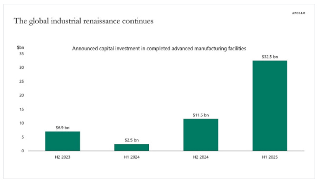 The US manufacturing cycle is gaining traction. With nearly 200 factory completions since mid-2023 and a $590 billion pipeline led by $5 billion-plus megaprojects, advanced manufacturing is set to be a durable growth engine for the US economy with positive spillovers to industrial real estate, private credit and nationwide employment, see chart below.