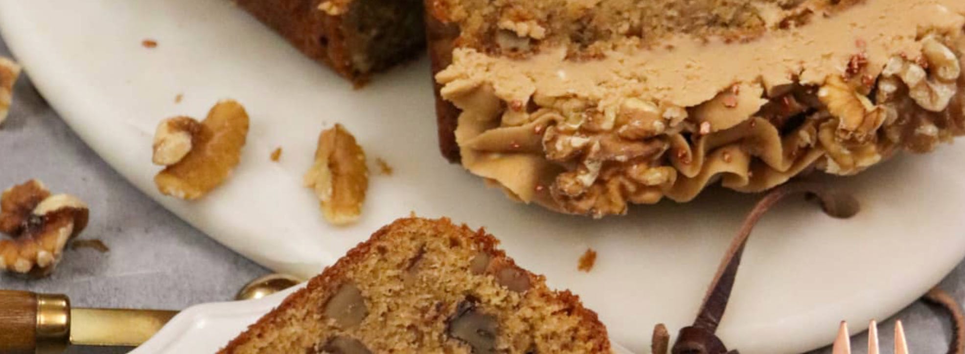 A coffee and walnut sponge with smooth coffee buttercream frosting, perfect for a breezy winter morning.