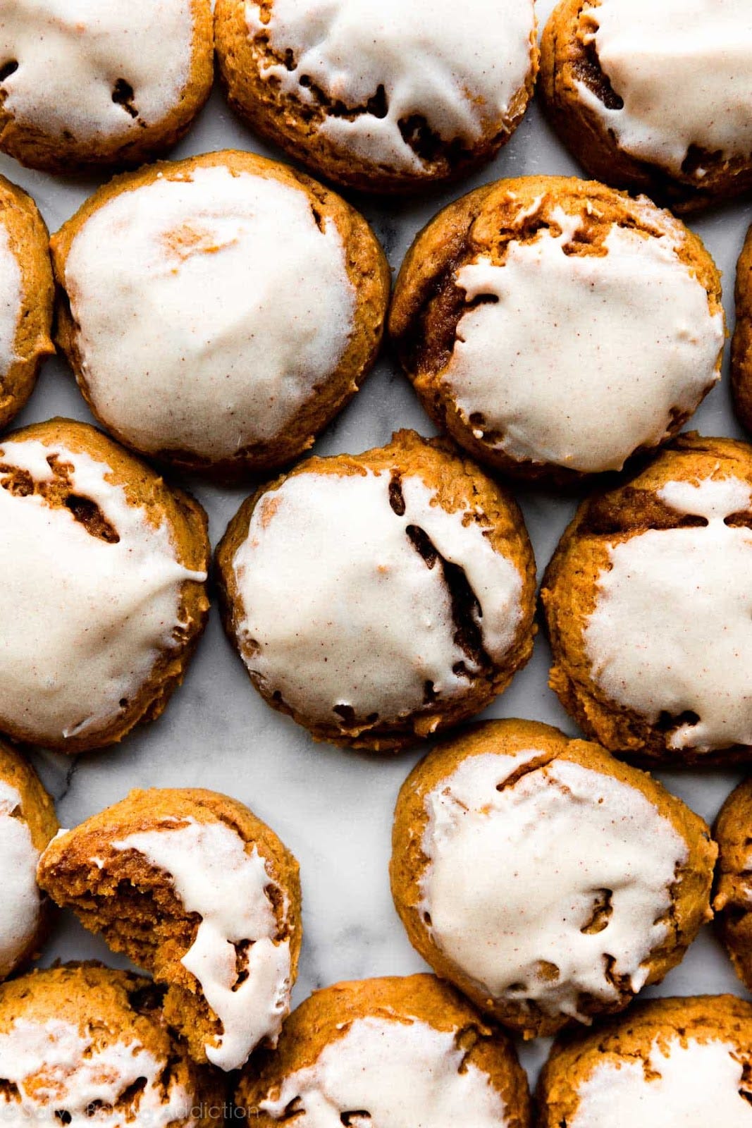 These soft pumpkin cookies are thick and cake-like, packed with a rich pumpkin spice flavor. The maple cream cheese icing adds a delightful touch, although the cookies are equally delightful on their own. They're quick and easy to make, and the best part is that there's no need to chill the cookie dough! I recommend blotting the pumpkin puree to remove any excess moisture and using a cookie scoop for perfect portions.