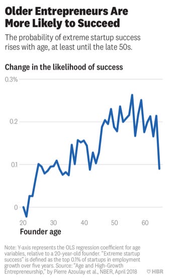 But it’s more glamorous to cover Mark Zuckerberg dropping out of Harvard at 19 or Bill Gates starting Microsoft at 20. These stories are real, but they’re extreme outliers. For every 20-something founder who makes it, there are thousands who crash and burn, and we never hear about them because failure doesn’t go viral.