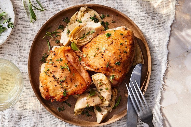 This one-pan chicken recipe is poised to become a weeknight staple, thanks to its versatility. Feel free to experiment with different flavor combinations, such as swapping the artichokes for blistered cherry tomatoes. You can also incorporate other fresh or frozen ingredients like summer squash, butternut squash, potato cubes, or carrot coins, depending on your cravings. This recipe is adapted from Catherine McCord's "Meal Prep Magic: Time-Saving Tricks for Stress-Free Cooking."