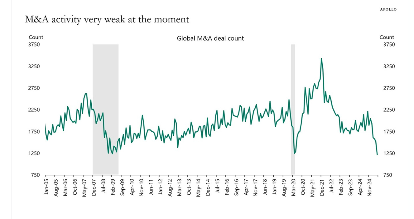Measures of M&A activity are approaching the lowest levels in decades, driven by the double whammy of high uncertainty for business planning and interest rates staying higher for longer.