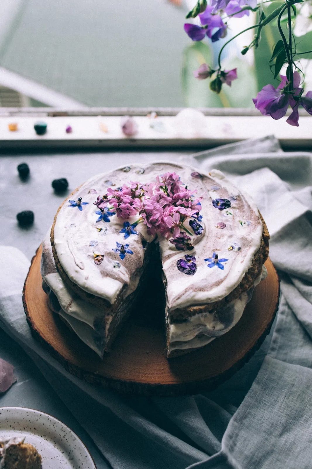 For the full recipe: https://mytinylagunakitchen.com/recipe/enchanted-flower-vanilla-berry-cake/