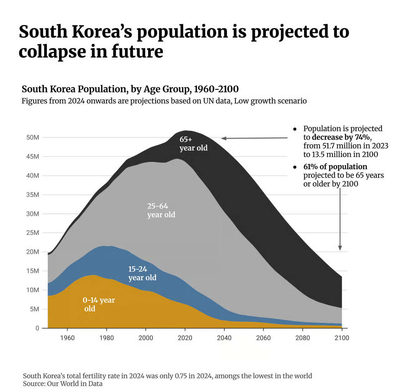 South Korea’s fertility rate fell to 0.72 in 2023, the lowest ever recorded for any country, anywhere. Japan’s population has been declining for over a decade with no meaningful reversal in sight. China, despite its scale, is projected to lose hundreds of millions of people over the coming century, and its younger generation has coined the term “lying flat” — tang ping — to describe the deliberate choice to stop striving in a system they believe is rigged against them. These are not lazy generations. These are generations that ran the math, didn’t like the answer, and stopped playing a game they had no reasonable chance of winning.