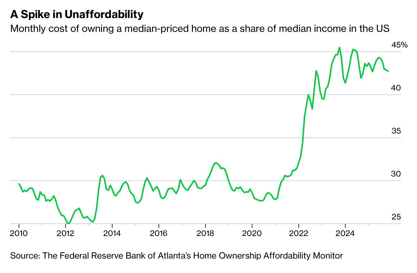 The numbers are almost too bleak to recite. The median age of a first-time homebuyer in the United States hit 56 years old in 2024, up from 45 in 2021 and 31 in 1981. The monthly cost of owning a median-priced American home, as a share of median income, has ballooned from roughly 30 percent a decade ago to nearly 50 percent today. Nearly half of Gen Z agrees with the statement: “No matter how hard I work, I will never be able to afford a home I really love.” Not a mansion. Not a place with a yard. Just a home they love.