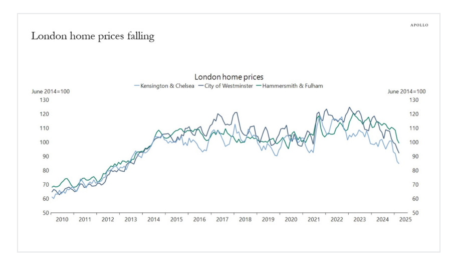 Home prices are falling in London, see chart above.