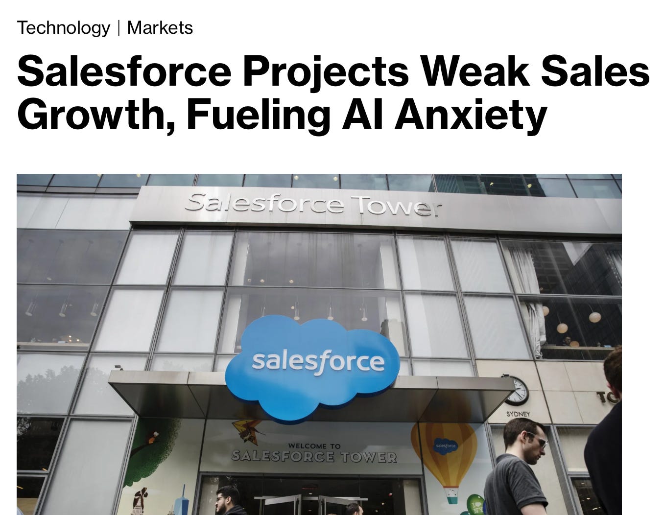 And one company is already proving this thesis works: Palantir just reported 70% revenue growth and guided for 61% next year. Seventy. Percent. Meanwhile, where’s Salesforce’s acceleration? They’ve been hyping their AI agent “Agentforce” for a year. Where’s their explosive growth?