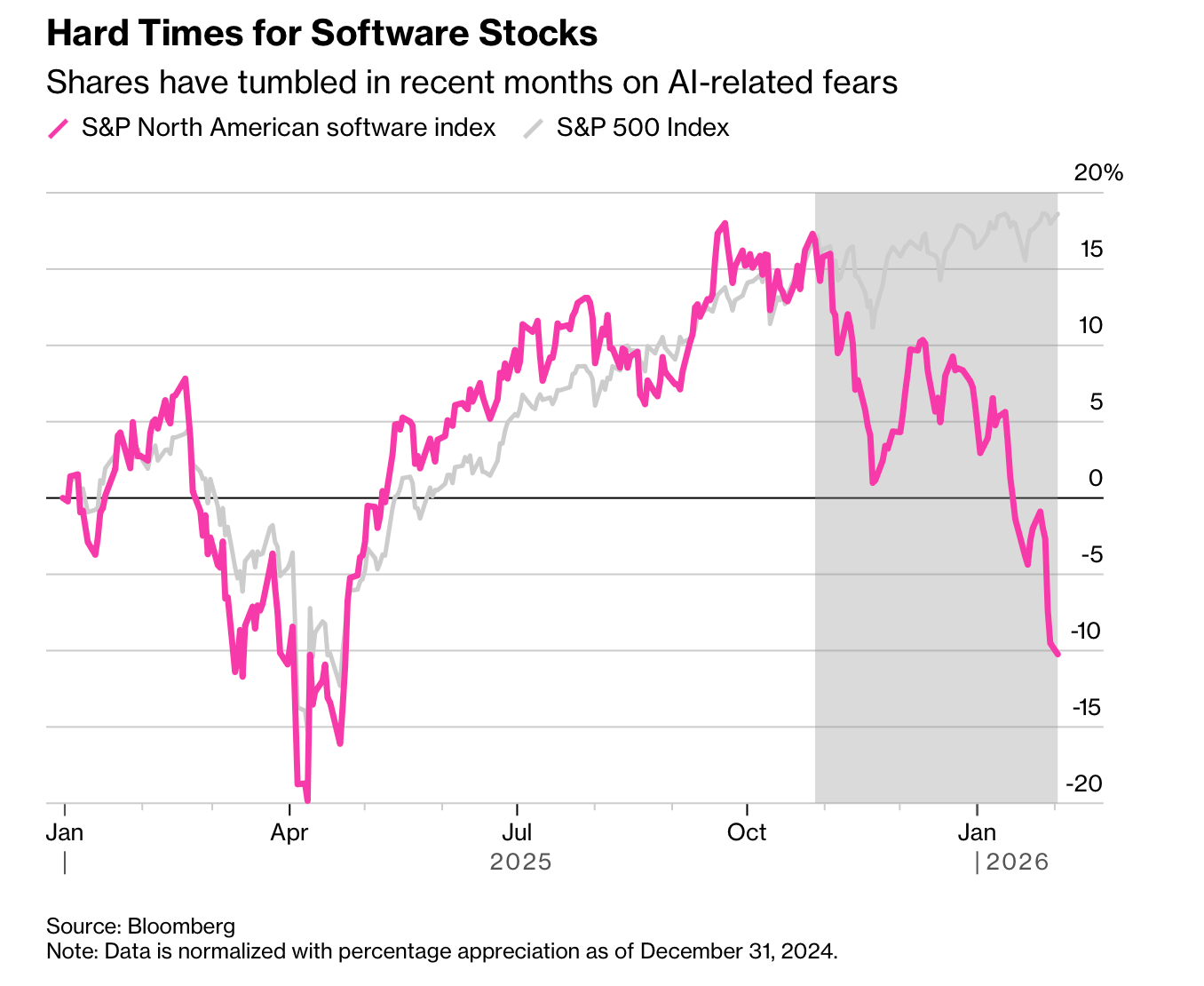 Now replace “Vancouver home” with “software company stocks” and “earthquake” with “AI.” Congratulations, you’re a Wall Street investor in February 2026. And you’re absolutely panicking.
