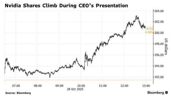 The announcements sent Nvidia shares up 5% to a record closing high of $201.03, with Huang arguing that AI models are now powerful enough that customers willingly pay for them, justifying the massive infrastructure investments and easing concerns about overinvestment in the sector.